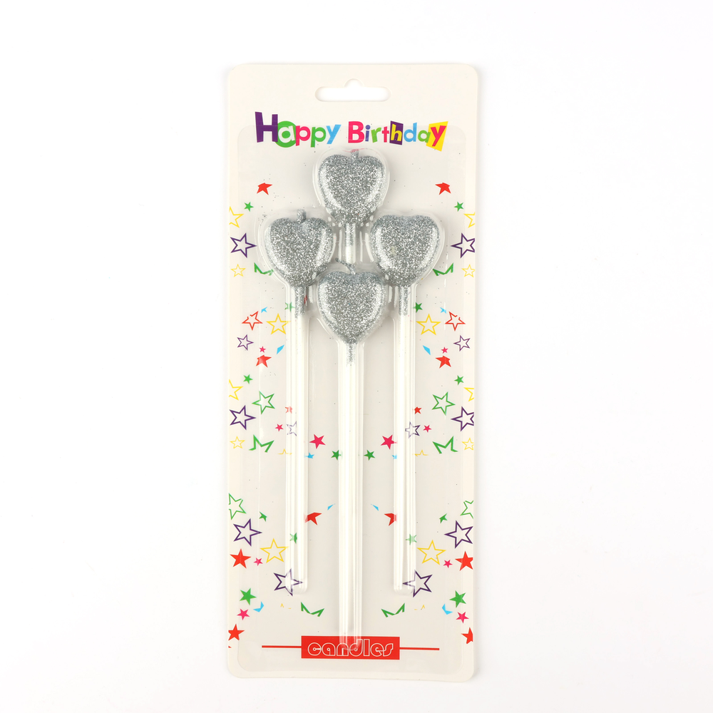 Vela Corazón Plateado con glitter