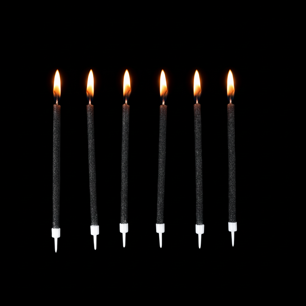 Vela 14cm glitter Negro. Con portavela