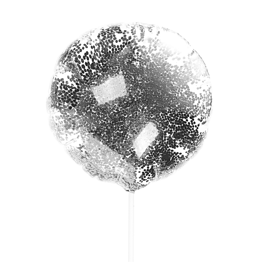 Globo Burbuja con Glitter Plateado, Palo y Luz
